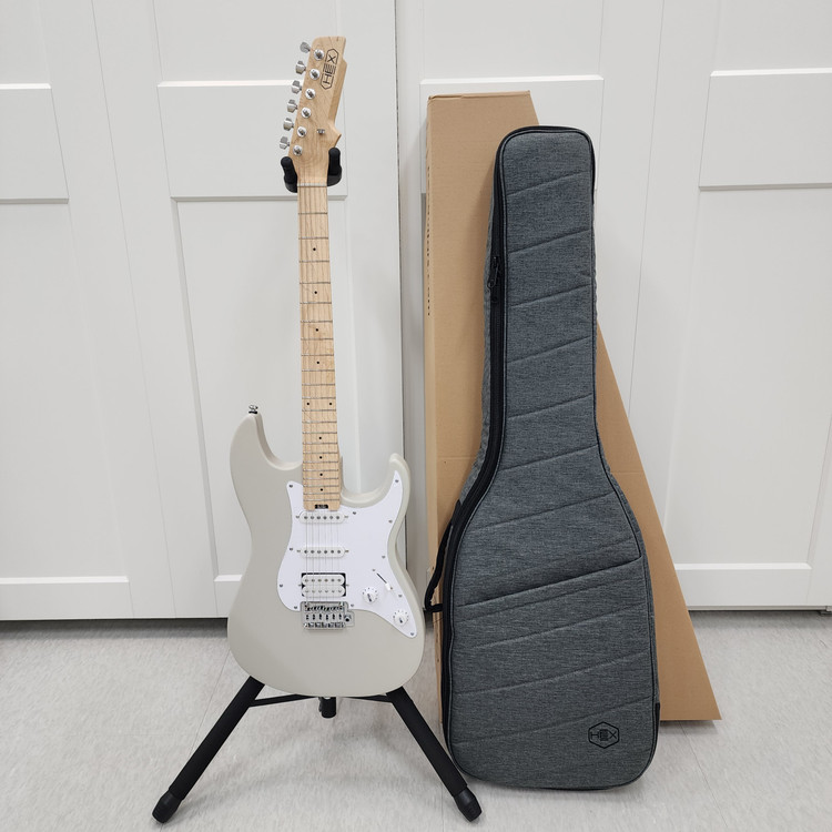 헥스 일렉기타 E100 PLUS 파스텔그레이 모델 - E100 PLUS PGY 정가 330,000원 - *할인가 239,000원 구성품 - 본품,가방,케이블,스트랩,피크3개 리퍼 상품입니다. 중고,반품 상품이 아닌 제조 과정에서 미세한 흠집이나 마감이 아쉬운 상품을 재검수하여 판매하는 상품으로 기능상 문제가 없는 상품입니다. 무료 배송 가능합니다.^^