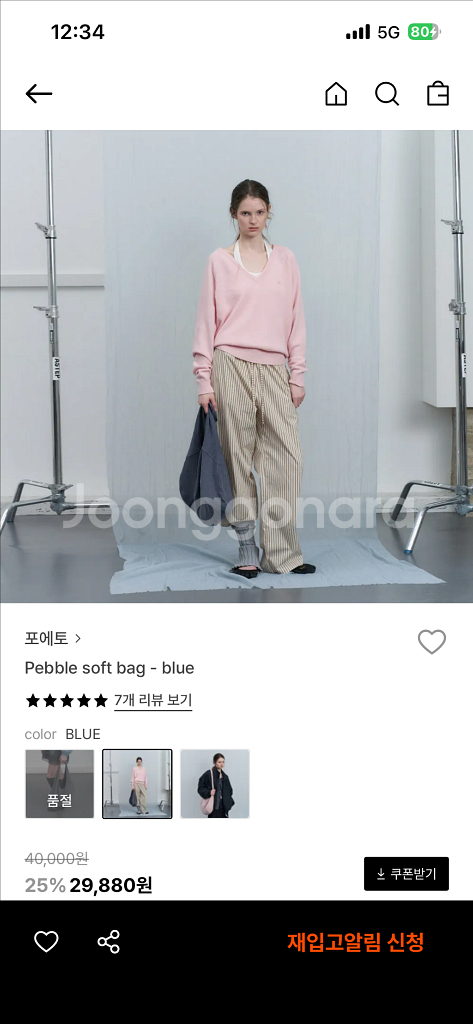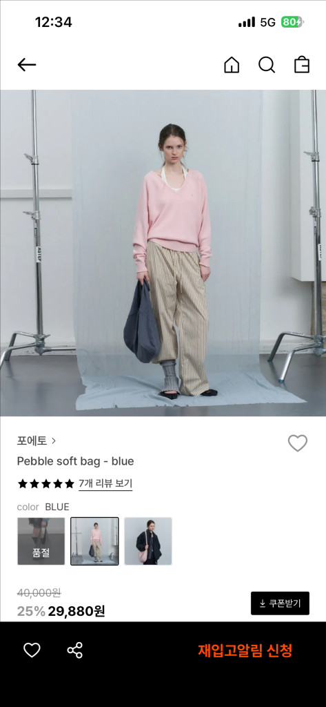 포에토 페블백 소프트 블루 새상품