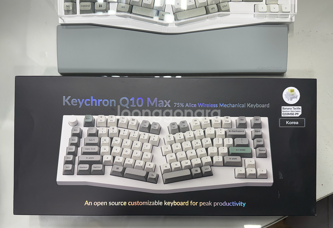 키크론 Q10 Max 75% Alice 무선 기계식 키보드 판매해요 박스, 팜레스트, 더스트 커버, 스위치 여분까지 모두 포함되어 있어요 Alice 배열로 인체공학적인 디자인이 특징이에요. 박스 구성품 모두 있습니다. 사진에 있는 모두 그대로 드려요. 저소음바나나축이 기본으로 설치되어 있고 적축스위치로 변경해서 사용할 수 있습니다. 한영키캡이고 한국 정품 등록 가능합니다.