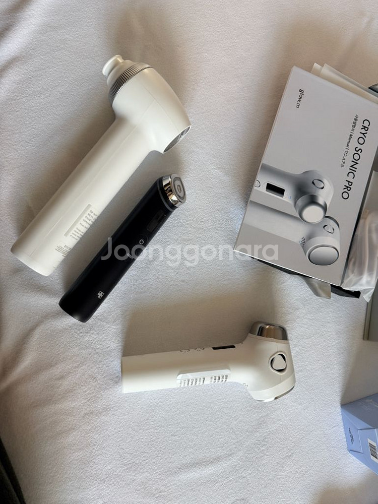 글로우엠 크라이오 소닉 프로 화이트 색상입니다 - 풀박스 구성 (케이블, 파우치, 설명서, 본품) - 모이스처 부스터 젤 포함 올해 1월 22일 구매했습니다. 다른 기기들도 많아서 몇번 안 썼습니다. 010빼고 문자 보내라는 사람 사기꾼 타 사이트에 올려달라는 사람 사기꾼