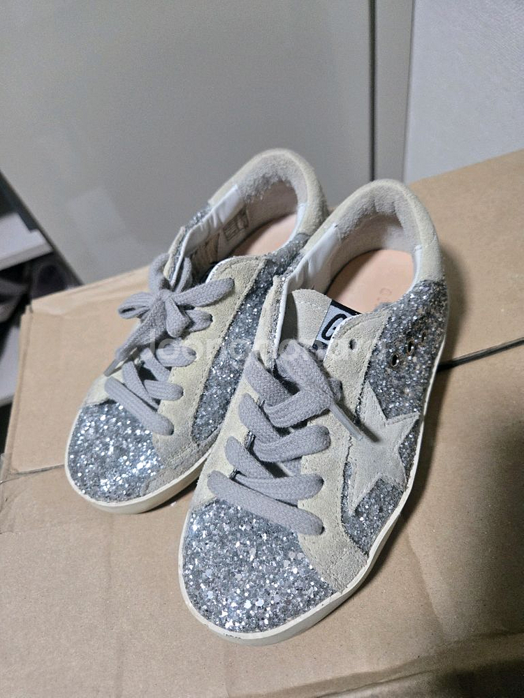 개인정보(거래정보)를 주고받는 행위는 사기에 노출될 수 있으므로 즉시 중고나라로 신고해 주세요골든구스 키즈 실버글리터 28사이즈입니다. 보시다시피 2번 잠깐 착용한거라 컨디션 좋아요. 사진이랑 동일해요~ 훨씬 비싸게 주고 샀어요ㅠㅠ 안신고 신발장에서만 있어서 싸게 보냅니다. 스마일부분은 자꾸 부딪혀서 저부분은 어쩔수 없어요~ 반품 환불 안되니 신중거래 해주세요