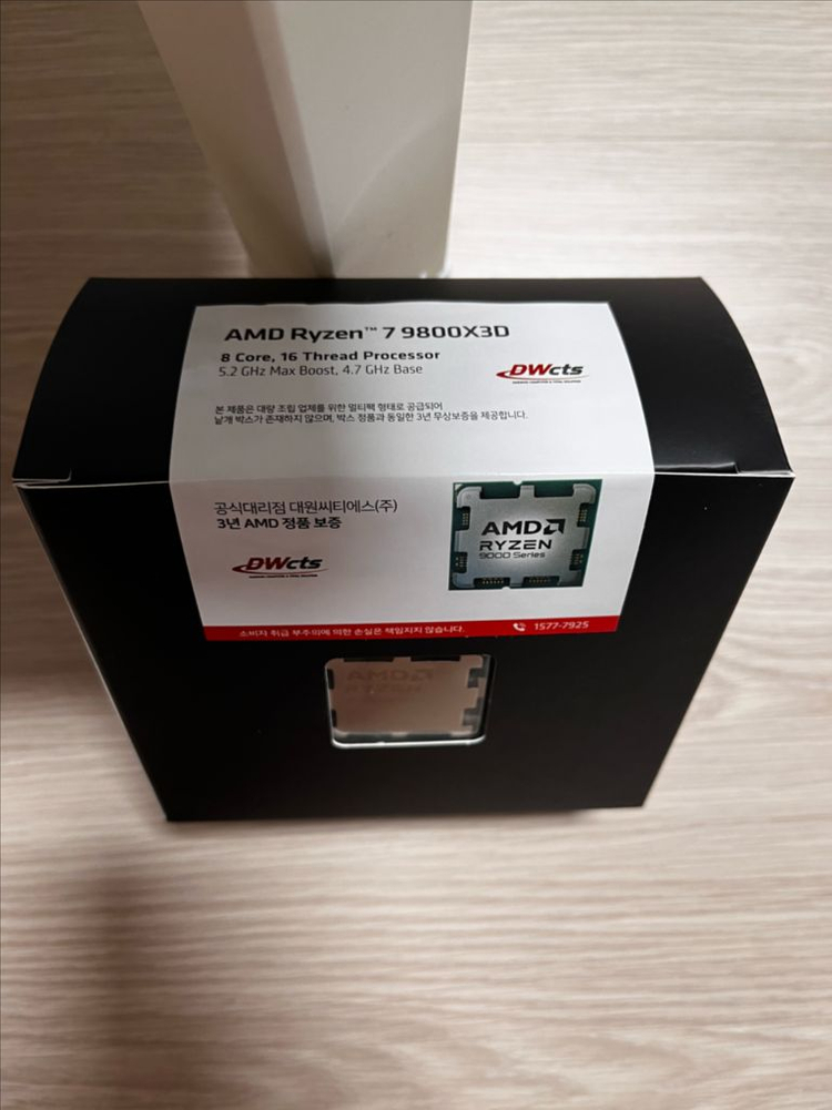 개인정보(거래정보)를 주고받는 행위는 사기에 노출될 수 있으므로 즉시 중고나라로 신고해 주세요미개봉 AMD 라이젠 7 9800X3D CPU입니다. 공식 대리점 대원씨티에스(주) 정품으로 3년 무상 보증이 가능합니다.
