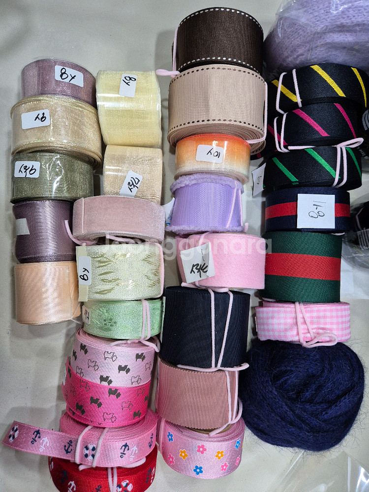 사용하고 남은것들이나 샘플감으로 모아두었던 리본들 정리합니다 종류가 많아서 폭이랑 잔량 전부체크 못했어요 메모해놓은숫자들은 야드단위로 잔량체크해놓은겁니다 총 30종 일괄정리합니다 정리중이라 교환이나 반품은 못해드려요 택배는 주중 화 금 (월.목포장)2일간만 가능합니다 반택못해유 포장, 리본 공예에 쓰이는 자투리 리본들입니다. 톤다운된 색감부터 파스텔톤까지 다양하게 있습니다. 사진에 보이는대로 묶음으로 판매합니다. 문의 없으시면 바로 안전결제해주시면 됩니다!
