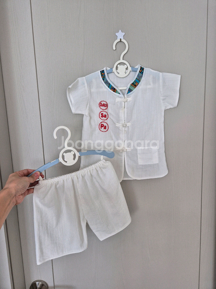 개인정보(거래정보)를 주고받는 행위는 사기에 노출될 수 있으므로 즉시 중고나라로 신고해 주세요아기 상하복 세트입니다 통기성이 좋아 땀이 많은 아이에게도 좋습니다 1회착용하여서 깨끗합니다 6사이즈 100입는아이가 착용하면좋을것같아요