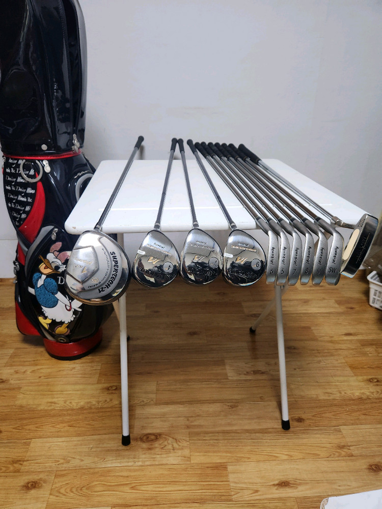 여성 ~ 맥킨리japan골프클럽 풀세트. 백 A+급 ▪︎아이언 : 맥킨리 캐비티 백 형태 5 ~ 8, SW - 샤프트 L : 그라파이트/카본 ▪︎드라이브 : 맥킨리 11.5° - 샤프트 L : 그라파이트/카본 ▪︎우드 : 4번 17°...7번 23°...9번 27° - 샤프트L : 그라파이트/카본 ▪︎퍼터 : 맥킨리 일자 형 ▪︎골프클럽 백 : 디즈니 데이지 덕 캐디백 & 전체 클럽. 백 모두 신품이라 보시면 됩니다 입문하시는 여성 골프 및 필드에 나가셔도 무난한 풀세트 입니다