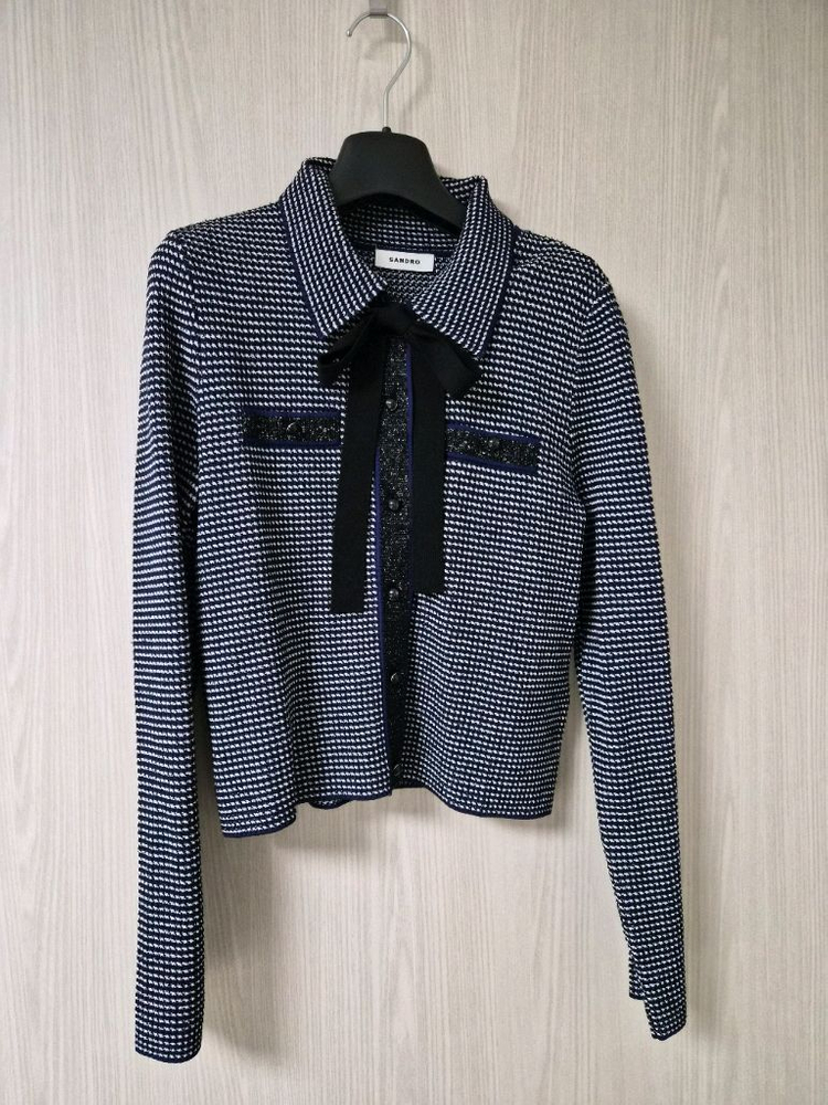 산드로 리본 니트가디건입니다 리본은 탈부착 가능합니다 크롭기장이에요 사이즈는 55입니다 사두고 다이어트에 실패해서 한번도 못입었어요 택채로 보관중입니다