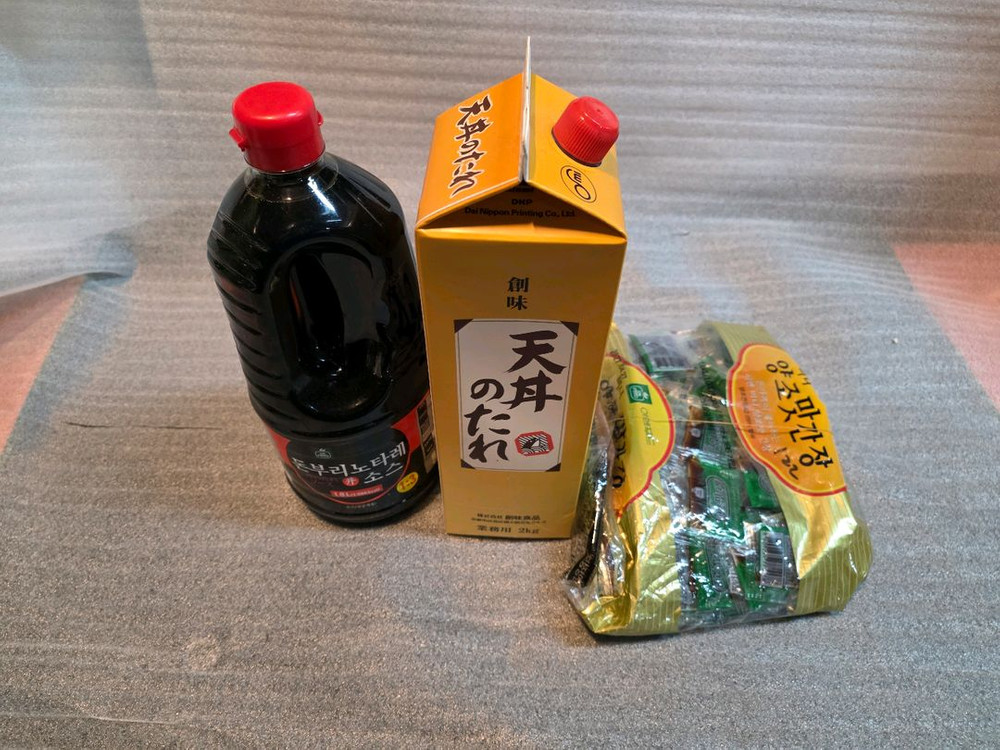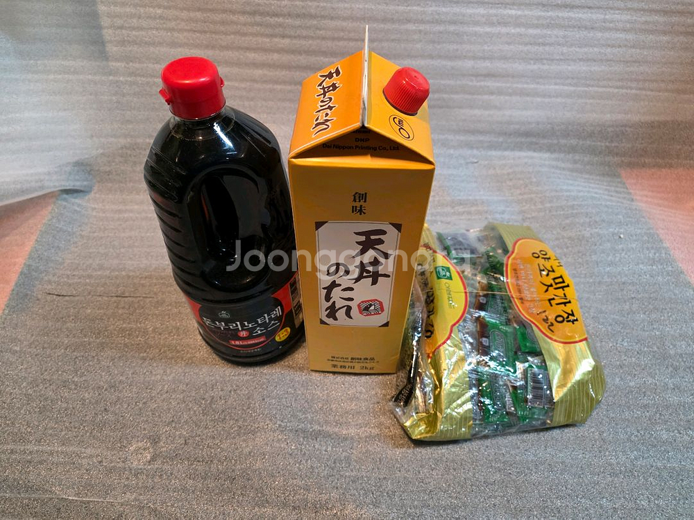 3종류 일괄 가격입니다. 새거 사려면 3만원 넘습니다. 폐업으로 남은 재료 싸게팝니다. 이엔푸드 돈부리노타레소스 1.8L 사용안한 새제품 1개 사용기한 2026.10.13 텐동노다래 소스 2kg 사용안한 새제품 1개 사용기한 26.06.25 일회용 양조 맛간장 5.6ml 122개 사용기한 27.04.27 택배거래시 안전 포장 하겠으나 파손 위험 있어서 파손 면책 동의 하신걸로 알고 진행합니다.