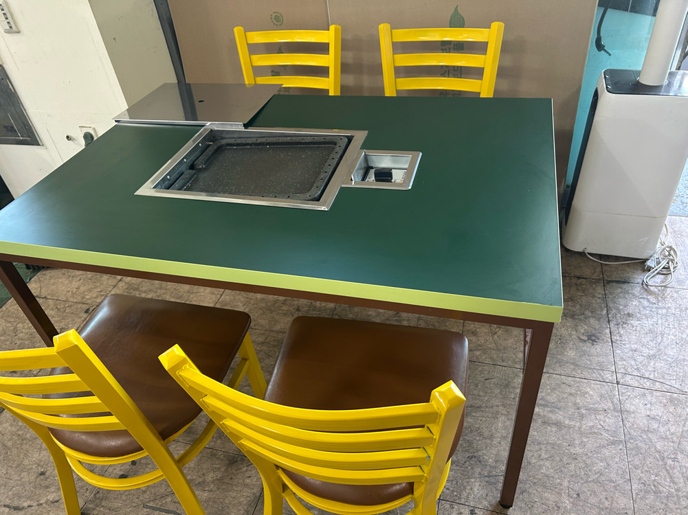 테이블형 사각 로스타 식탁의자 세트 1200*800 (가스식탁1개 의자 4개) 1세트에 15만원 총 7세트 있어요~ 보시는것처럼 깨끗합니다^^ (불판포함) 수저통도 달려있습니다 정말 저렴히 드립니다 쿨거래 부탁드립니다!! ***도시가스용*** 사용 기간은 5개월!! 제조일자는 2025년 07월 23일 as반품환불불가 배송비는 별도예요 택배 안됩니다 직거래만!!!! 전남 광주입니다(경기도아님) 인근은 유료배달은 가능해요~