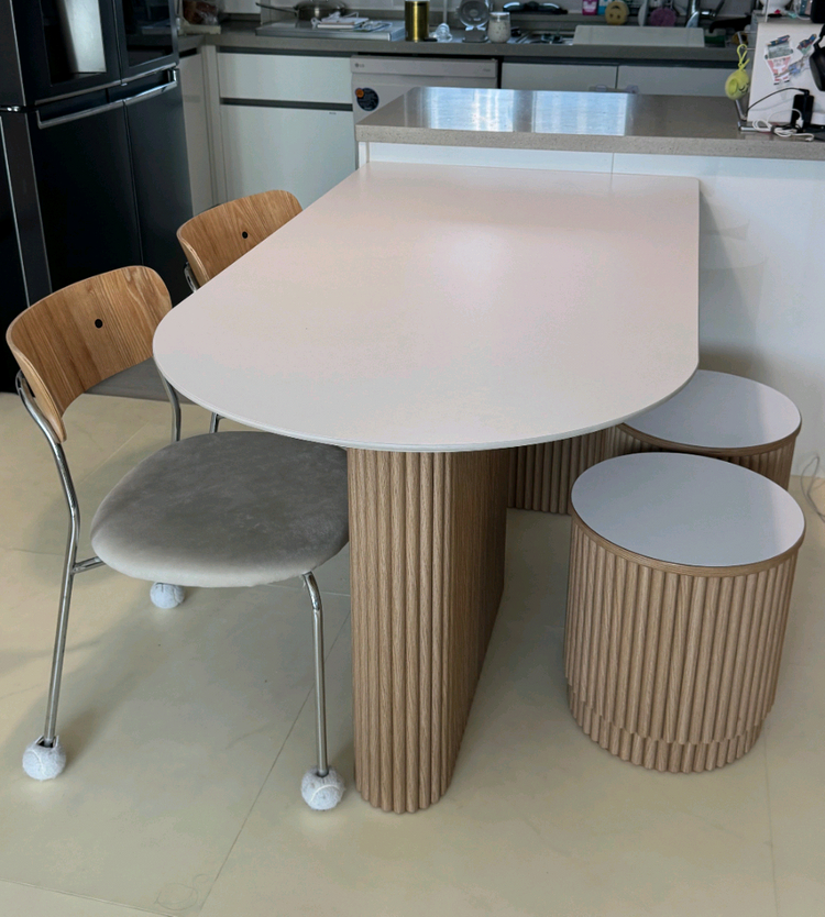 사이즈:세라믹상판 길이 1500mm 가로폭 800mm 상태 사진참고해주세요 상태좋아요 의자는 템바보드 원형툴의자2개 등받이의자2개, 반달형태라 어디에 두시나 구조적으로 잘어울려요 23년상반기 100초반에 구매했습니다. 다른매물 저가형이랑 비교하시면안돼요 실사용했으나 제품특성상 파손 하자없어요 오래쓸수있는 내구성이지만 사정상 판매합니다 식탁이라 아무래도 용달부르셔야할거같아요.