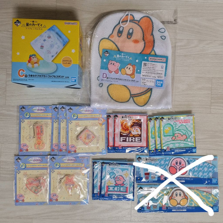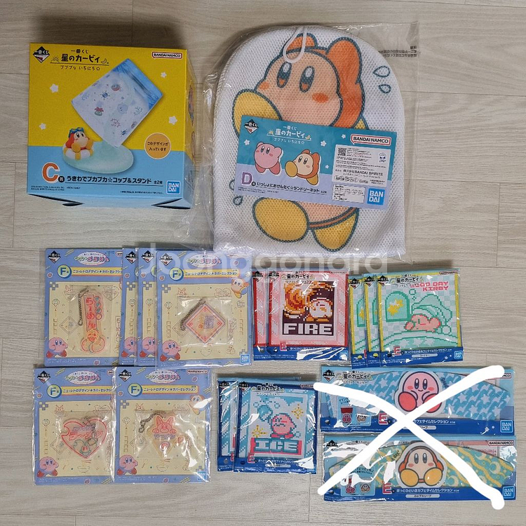 별의커비 이치방쿠지 제일복권 C, D, E, F, G 상 팝니다 모두 새상품 입니다 (푸푸푸한 신생활, 푸푸푸 라멘, 푸푸푸한 하루) 1번사진 C상 컵&스탠드 : 2.5 D상 세탁망 : 1.5 E상 컵 받침 : 개당 0.4 (홀더 판매완) F상 키링 : 개당 0.35 2번 사진 E상 손수건 : 개당 0.4 3번사진 G상 손수건 : 개당 0.4 G상 클리어파일 : 개당 0.3 4번사진 F상 러버, 손수건 : 개당 0.4 5번사진 G상 메모지 : 개당 0.3 우체국 택배 0.4, 반택 0.2 추가됩니다