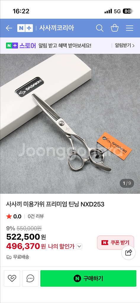 개인정보(거래정보)를 주고받는 행위는 사기에 노출될 수 있으므로 즉시 중고나라로 신고해 주세요사사키에서 나온 프리미엄 틴닝 가위 NXD253입니다 25개의 발에 3개의 홈이 있는 것이 특징이며, 절삭률은 20~25%입니다 무게는 58g이고 엄지 홀은 18x13mm, 약지 홀은 18x13mm입니다 몇번 안써서 상태 좋습니다