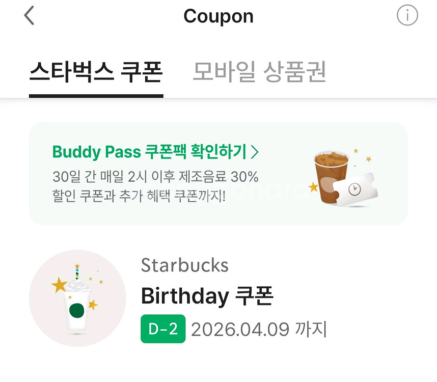 개인정보(거래정보)를 주고받는 행위는 사기에 노출될 수 있으므로 즉시 중고나라로 신고해 주세요스타벅스 생일쿠폰판매 4월 9일까지 가능해요 선물하기로 보내드립니다 ** 꼭 구매하실분만 채팅주세요^^