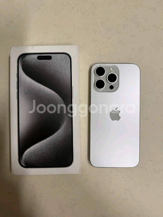 개인정보(거래정보)를 주고받는 행위는 사기에 노출될 수 있으므로 즉시 중고나라로 신고해 주세요모델명 : iPhone 15 Pro Max 512GB 색 상 : 화이트 티타늄 구성품 : 풀박스(구성품 미사용) 상 태 : 기스 찍힘 없는 S급 배터리 : 95% 쿠팡 자급제 구매후 사용하다 팝니다. 경북전문대 근처입니다
