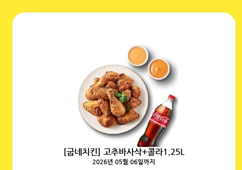 굽네치킨 고추바사삭+콜라1.25 팝니다 챗주세요