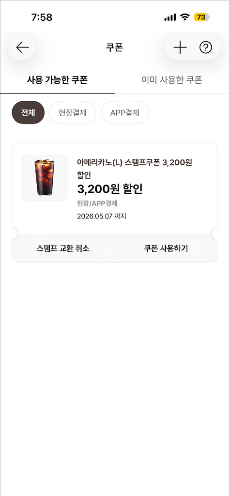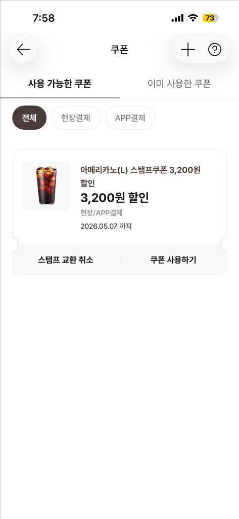 * 이디야 아메리카노(L) 교환권 (스탬프쿠폰 3,200원 할인) 1장 → 2600원에 판매 합니다 * 유효기간은 26.05.07. 까지 입니다 * 입금 확인후에 바로 전송 해드리겠습니다 * 전송 후에는 기간연장 및 환불이 불가합니다 * 쿠폰의 문제가 아닌 이상 환불 불가 합니다 * 구매 원하시는 분은 언제든지 채팅 주세요 빠른 답장 드립니다 구매 하시지도 않으면서 채팅 주시지마세요(계좌 먹튀, 장난 사절) * 사용법 아시는분만 구매 부탁드립니다 스탬프 쿠폰이라서 스탬프 적립은 불가합니다 * 바코드 캡쳐 보내드리고,혹여나 바코드인식이 안되면 키오스크에서 쿠폰번호 입력후 사용하시면 됩니다
