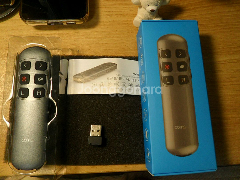 [미사용]coms 무선 프레젠터 프리젠터 에어마우스 EN547 제품 사진: https://salemanager.tistory.com/96018 제품명: coms 무선 프레젠터 에어마우스 모델명: EN547 제품구성: 레이저 프리젠터, USB 동글, 유저 매뉴얼, 박스 제조년월: 2020-11 제품 정보: https://www.comsmart.co.kr/cmart/shop/item.php?it_id=1553141896&num=1&ca_id2= 제품 사진: https://salemanager.tistory.com/96018 !!!제품 상세 사진은 위의 '제품 사진' 링크에서 보실 수 있습니다!!! !!!왼쪽 클릭이 안되는 경우 게시글 URL복사 후 게시글을 웹 브라우저에서 열면 '제품 사진' 링크 복사가 가능합니다!!! 판매가격: 13,000원(직거래 가능/택배거래시: 일반택배 5,000원/GS편의점 수령 반값택배 2,700원) !!!미사용 제품입니다!!!