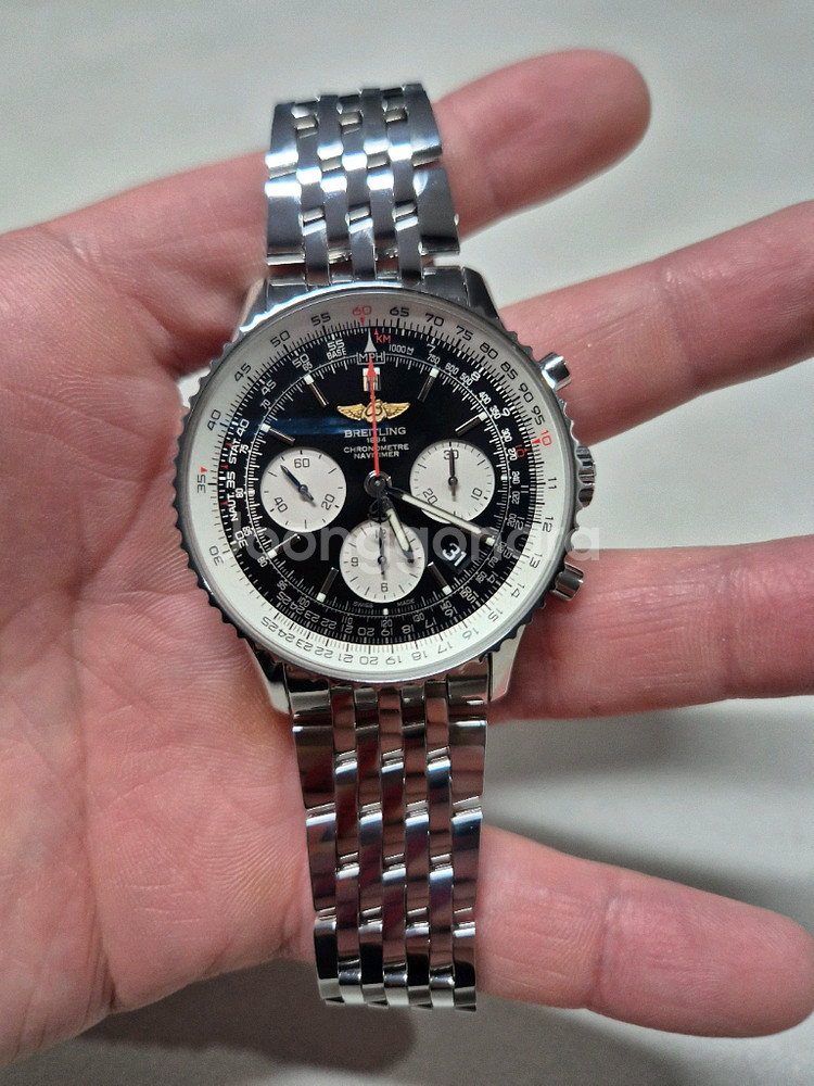 브라이틀링 네비타이머 43미리 일본 한정판 황금날개(황날) B01 0. 모델번호 : AB0121211B2A1 1. 모델명 : 브라이틀링 네비타이머 43미리 일본 한정판 황금날개(황날) B01 2. 스템핑일자 : 2020년 6월 3. 리테일가 : 1050만 4. 판매가격 : 920만 5. 구성품 : 보증서, 설명서 등 풀박스(마지막 구성품 사진 참조), 정품 가죽줄 포함(핀버클) 6. 시계상태 : 9.5점 ㅁ 브라이틀링 황금날개 버전 - 일반 황금날개 버전은 2018년 단종 - 단종 후 일본에서 2020년 단기간만 한정판매한 기간한정 에디션 - B01 무브 탑재(튜더 크로노에 쓰이는 무브 - 원래 브랄이 원조) - 프린팅이 아닌 양각 황금날개로 18년 단종 이후 황날 중에선 최신 스탬핑 - 일반 네비타이머와 달리 뒷백 시스루 - 브슬에 이지링크 기능 탑재(반칸 확장 가능) ㅁ 일본 한정판(넘버드 에디션 X, 일정기간만 한정 판매) ㅁ 정품 가죽 핀버클 포함 ㅁ 상태는 미세 헤어기스 외 찍힘/눌림 없음(헤어기스도 극소수만 존재) ㅁ 직거래 대구 ㅁ 관심 있으시면 문자 주세요