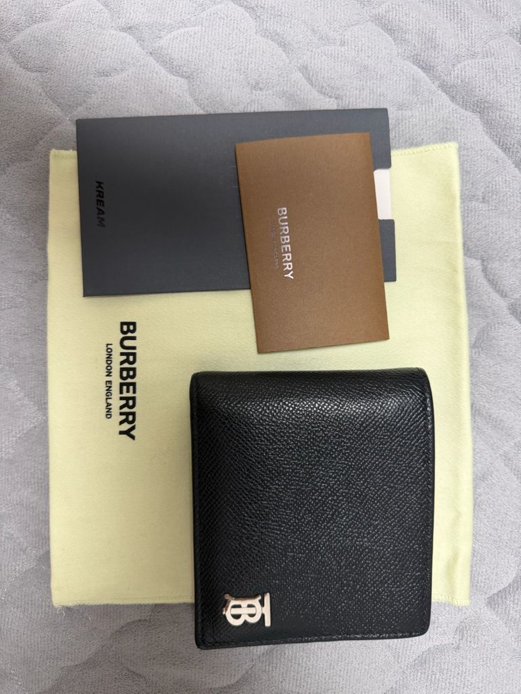 고급스러운 버버리 TB로고 반지갑 판매합니다. 그레인 레더 소재로 스크래치에 강하고 오래 사용하기 좋습니다. 블랙 색상이라 어떤 스타일에도 잘 어울립니다. 크림에서 구매했고 거래내역이나 지갑 상태 다 보여드려요. 정가 66만원입니다.