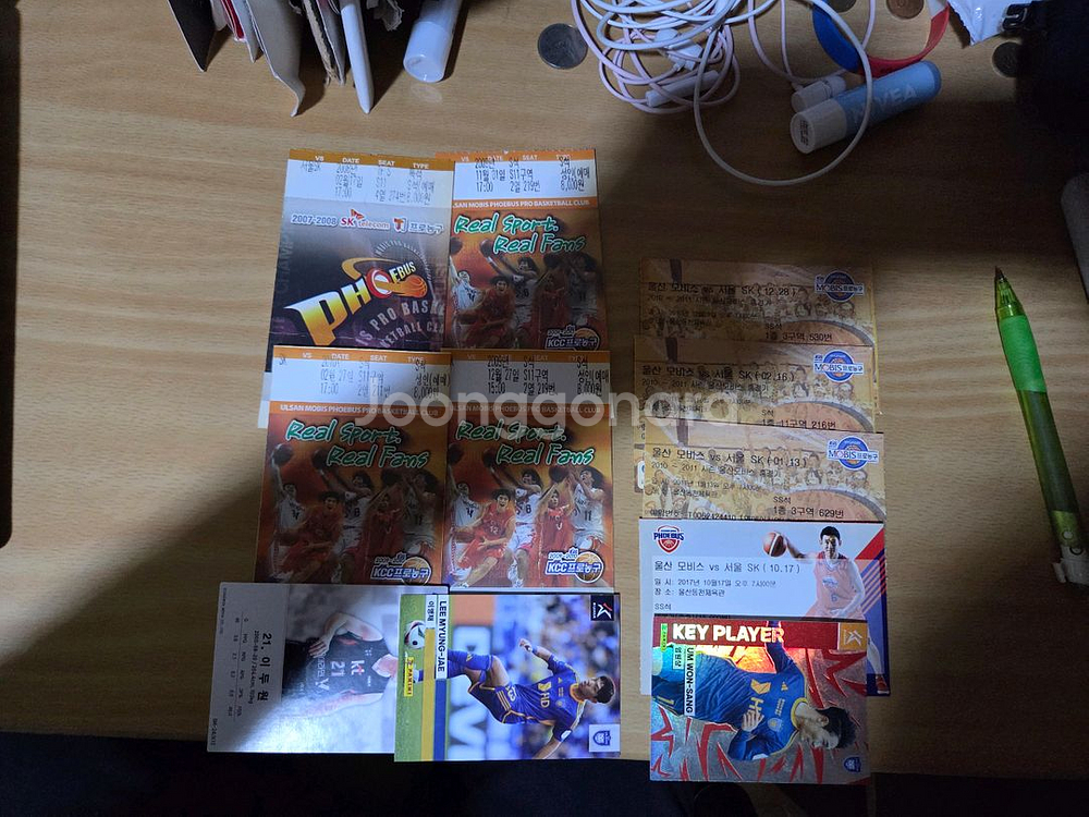 개인정보(거래정보)를 주고받는 행위는 사기에 노출될 수 있으므로 즉시 중고나라로 신고해 주세요울산모비스 지류티켓 20장 판매해요 가격은 한장에 4000원이에요 24시즌까지 소장하고 있어요 제가 sk팬이라서 다 동천체육관 가서 직관한 티켓이에요 서울쪽 직거래 가능 택배는 우체국으로 보내드려요 관심 있는 분 연락주세요