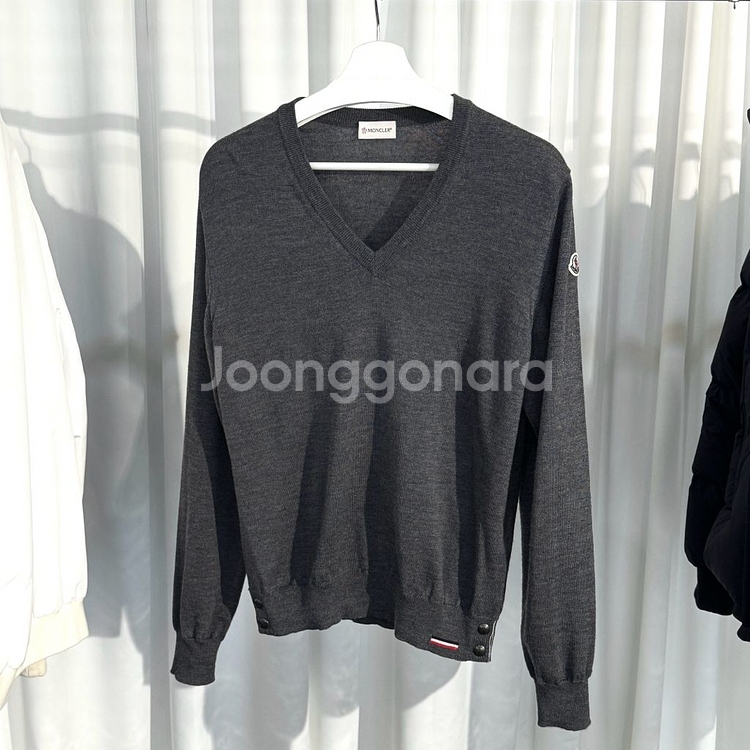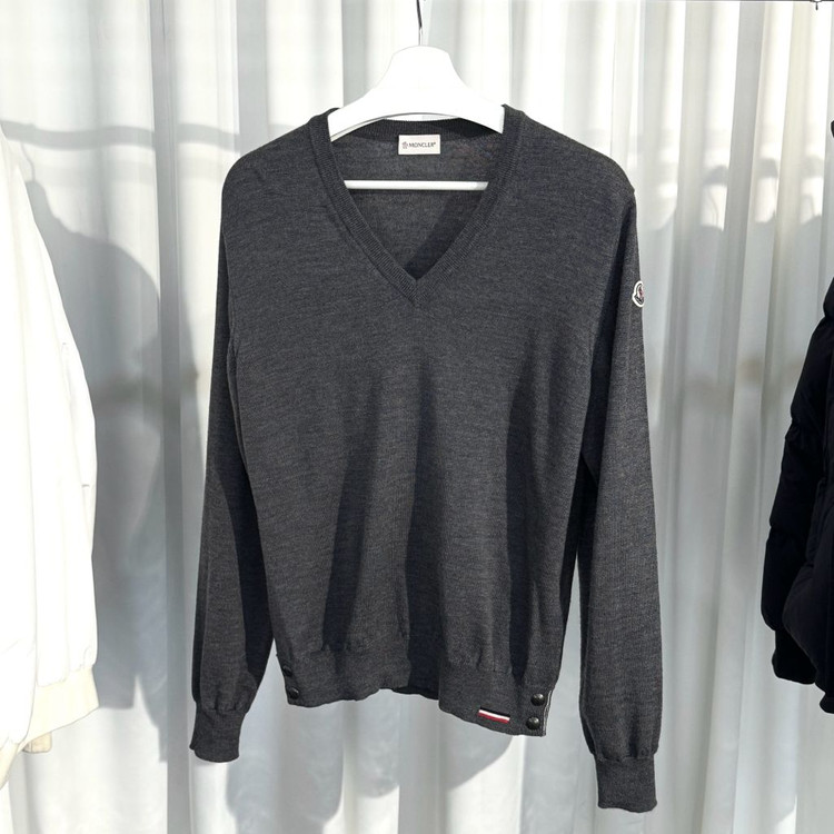 몽클레어 브이넥 와펜 패치 니트 그레이 M 사이즈 /새상품급 44만원