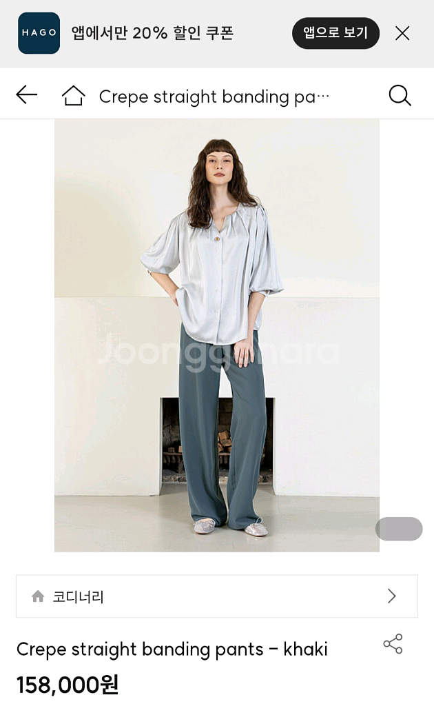 밴딩 슬랙스 카키 새상품이에요. 네이버 검색하시면 다른 컬러 리뷰 보실 수 있어요. 블루 컬러가 예쁘고 여름에 시원하게 입기 좋아요. 출근룩 데일리룩으로 좋아요~ 코디너리는 s 가 여유 있어 평소 m 입으셔도 잘 맞을거에요