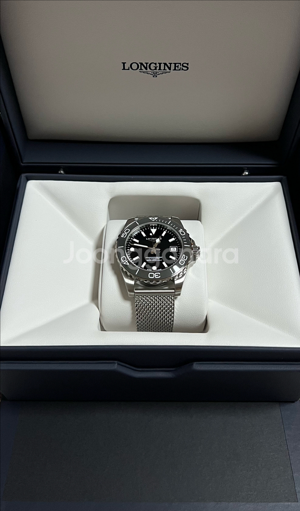 론진 신형 하이드로콘퀘스트 그레이 베젤 메쉬 브레이슬릿 39mm 제품입니다. 26년 4월 구매 제품이며, 줄 조정 시에 시착만 해본 뒤 쭉 박스에 넣어놓고 보관만 해오다가 단순 변심으로 내놓습니다. 미사용 새제품이기때문에, 시계 상태 문의는 따로 받지 않겠습니다. 구성품 보증서,론진 쇼핑백 등 전부 보유 중이며, 서울 직거래 가능합니다.
