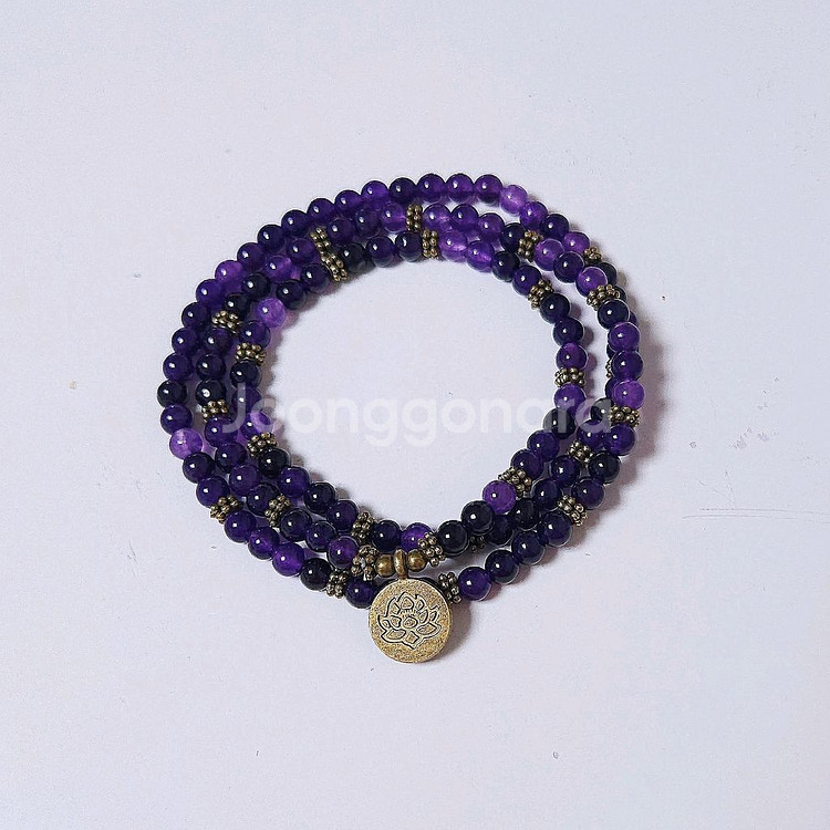 제가 파는 다른 상품이랑 같이 하시면 [에눌] 해드립니다 플라스틱 비즈가 아닌 S급 천연 자수정 6mm로 만든 108 염주입니다 흔하지않은 디자인으로 가운데에 1.5cm 크기의 연꽃펜던트가 달려있어 예쁩니다 자수정이 몸 전신에 좋은건 너무나 유명해서 따로 적지는 않겠습니다 둘레 100cm로 목걸이로 써도 되고 감아써 팔찌처럼 쓰셔도 됩니다