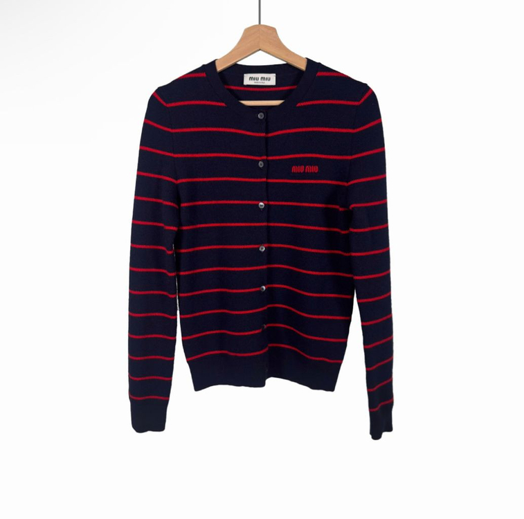 - 브랜드 : MiuMiu - 모델명 : MMF895 15ND F0969 - 컨디션 : A+ - 사이즈 : 38 실측 사이즈: 총장: 61.5cm 가슴: 42cm 어깨: 36cm 소매: 66cm - 재질 : Wool 100% - 색 상 : Red, Navy - 구성품 : 본품 + 대한명품감정원 정품감정서 - 상세설명 : - 미우미우 24fw 스트라이프 울 가디건 - 24fw 공식 홈페이지 발매 가격 280만원 - 구매 즉시 착용 가능한 컨디션 - VIARE 3중 정품 검수 완료 ==================== 다양한 제품들을 보고 싶다면 Instagram @viare_official Naver ‘Viare’ 검색