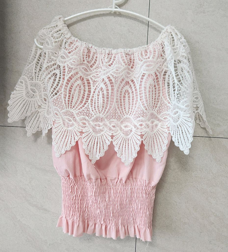 화이트 레이스 디테일이 고급스럽고 어깨라인 고무줄이 굉장히 부드럽게 늘어나요. 히리부분은 신축성 있는 밴딩 처리로 편안하게 입으실수 있으실꺼에요. 옷은 입지않아 새옷처럼 깨끗합니다. 가슴단면: 50 총길이: 46 선입금 확인후 택배발송 해드리는점 양해부탁드립니다.