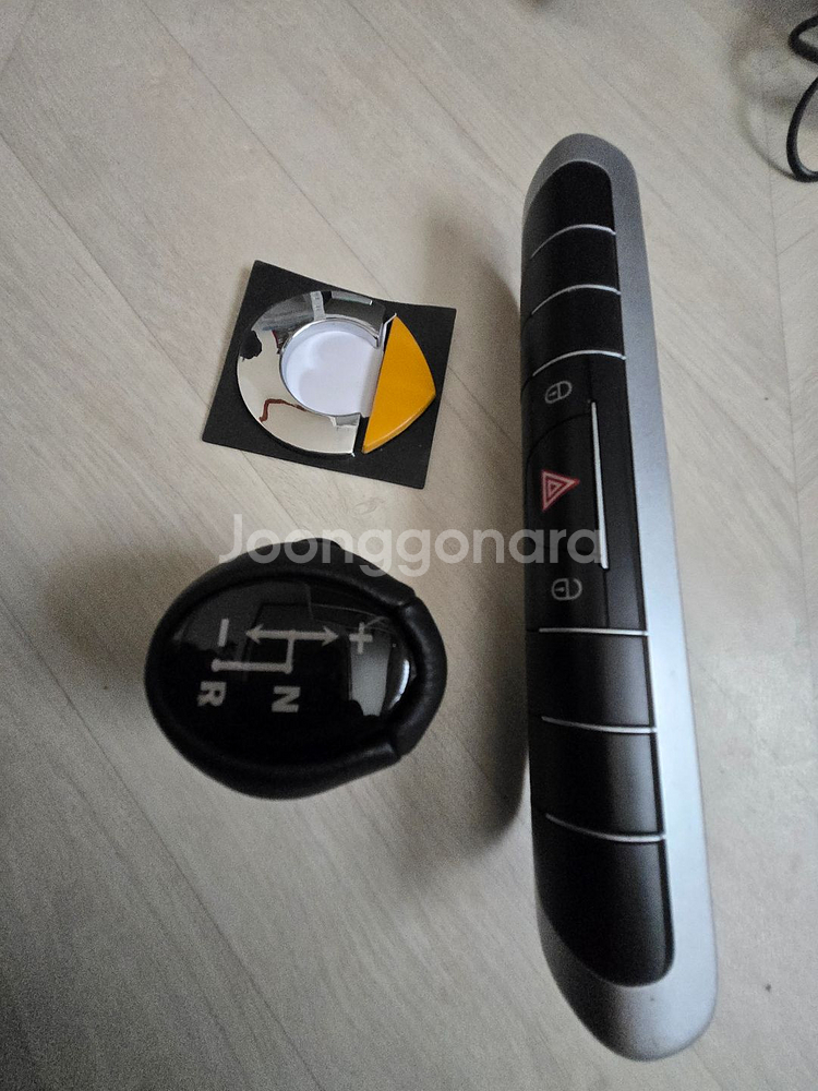 1. 기어봉 OEM : 새것입니다. 2. 센터 제어 비상 버튼 스위치 OEM : 새것입니다. 3. 엠블럼 : 새것이지만, 접착면 종이 일부가 떨어졌습니다.(장착 위치는 사진 참조) 접착력이 원래 략해서 3M 끈끈이를 사용하셔야 합니다~ 4. 커버 : 한번 쒸어보고, 사용 안하기로 한 거진 새것입니다.(품질은 별로입니다. 직거래는 분당, 판교 지역만 가능합니다.