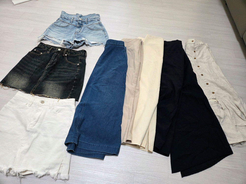 S사이즈(24~25인치)스커트, 반바지 8장 일괄 저렴하게 판매합니다~ - 데님 미니 스커트, 화이트 스커트, 롱 스커트 등 다양한 디자인이 있습니다 - 캐주얼하게 또는 여성스럽게 코디하기 좋습니다 - 밑단 컷팅 디테일이 있는 제품도 있습니다 전체적으로 사용감은 조금 있지만, 깨끗해요. 편하게 입으실 분들께 추천드려요.