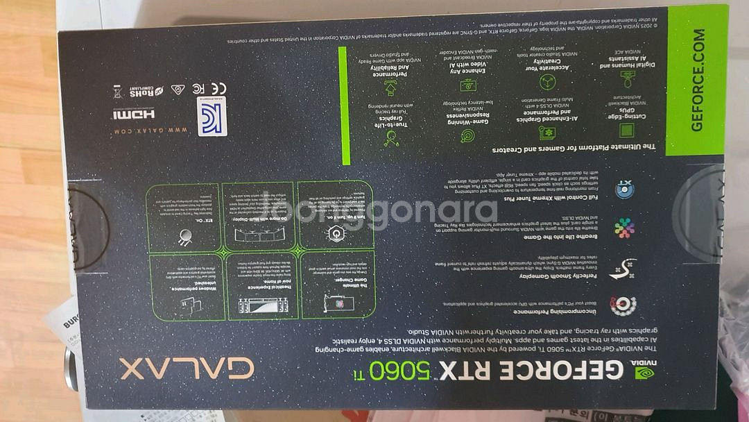 GeForce RTX 5060 Ti 그래픽카드입니다. 박스 상태로 보관되어 있어요. 게이밍이나 작업용으로 성능 좋은 제품입니다 갤럭시 5060ti 블랙 oc 클래식 미개봉 새제품입니다. 직거래시 530000