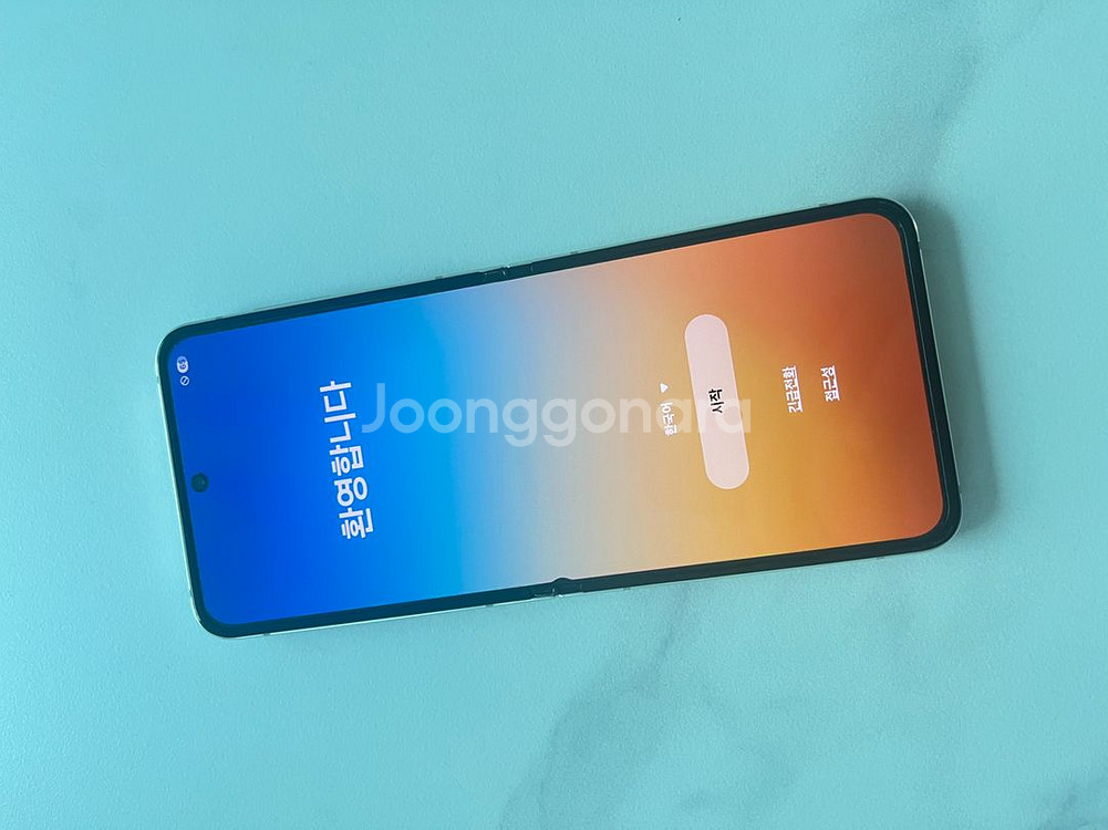 갤럭시z플립5 512g 액정 잔상 배터리 및 기능 이상없음 화면 중간 왼쪽 힌지 부분 작은 멍 있어요 작아서 사용하는데 불편함 없음 케이스 드리구요 정상해지폰 유심 꽃으면 바로 사용 가능 직거래는 1호선 성대역 근처 택배 무료배송 연락 주십시오!