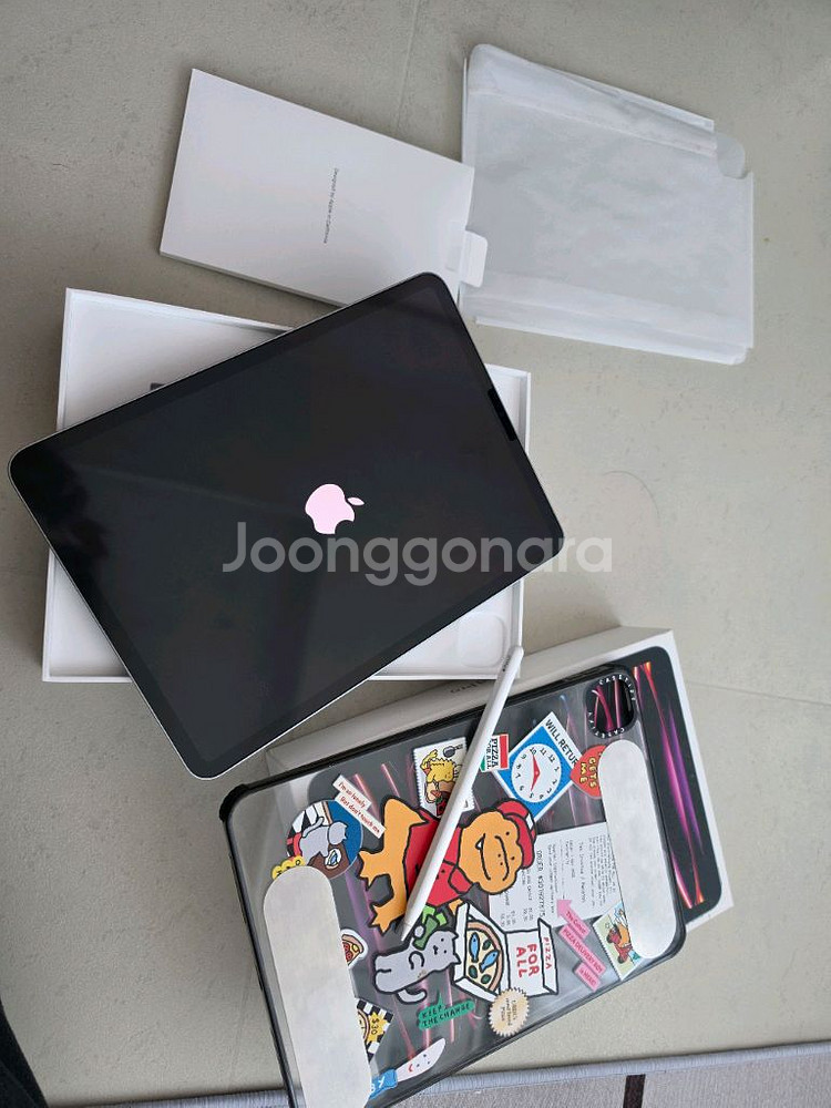 Apple iPad Pro 11형 (4세대) Wi-Fi 모델 128GB 스페이스 그레이 색상입니다 2023년5월식 추정(애플케어 25년5월만료) 구성품은 풀박스에서 충전기,케이블 없이 본품 박스 애플펜슬2(정품,박스분실) 케이스티파이케이스 입니다 액정보호필름 부착되어 있고 찍힘이나 액정 기스는 없습니다 배터리성능 103% 싸이클 52회 사용감 거의 없습니다 송도4동 직거래 합니다