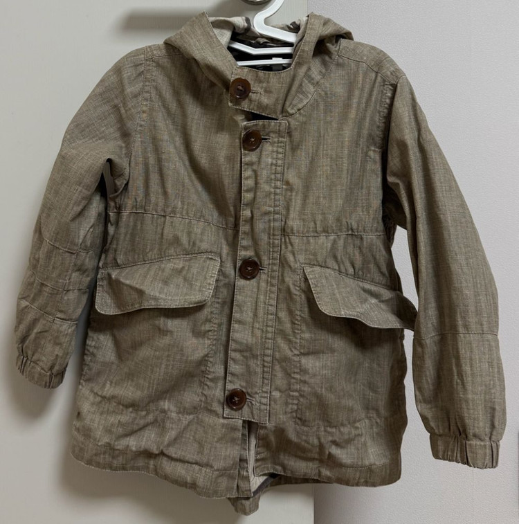 저희 아이가 입었던 옷이라 중고거래 예민하신 분께서는 피해주시기 바랍니다. 어두운 토프 브라운 색감의 보스락 거리는 소재의 트렌치 느낌 나는 아우터 입니다. 두께감은 얇고 안쪽에 면 원단으로 팔 부분까지 라이닝 되어 있습니다. 큰 하자는 없으며 상태와 실측 사이즈는 사진 유심히 참고 부탁드립니다. 거래희망하시는 분께서는 채팅 부탁드립니다. 부산 내 직거래는 종합운동장역 5번 출구 혹은 제 시간에 맞춰 주시면 장소 조율 후 어디서든 직거래 가능하며 반품은 불가 합니다. 감사합니다^^