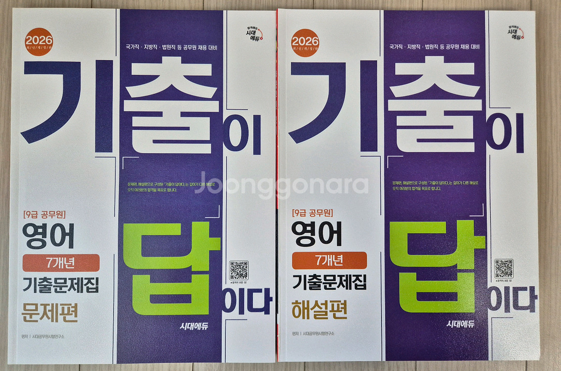개인정보(거래정보)를 주고받는 행위는 사기에 노출될 수 있으므로 즉시 중고나라로 신고해 주세요2026 시대에듀 기출이 답이다 9급 공무원 영어 7년 기출문제집 새책입니다 원가 18,900원인데 택배비포함 만원에 드립니다