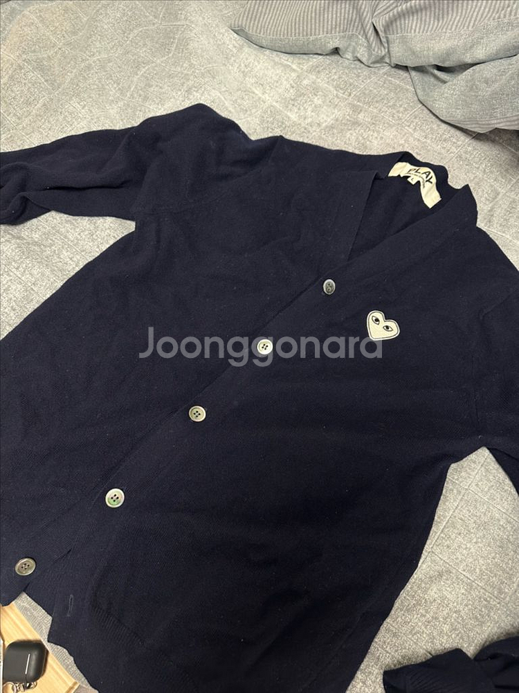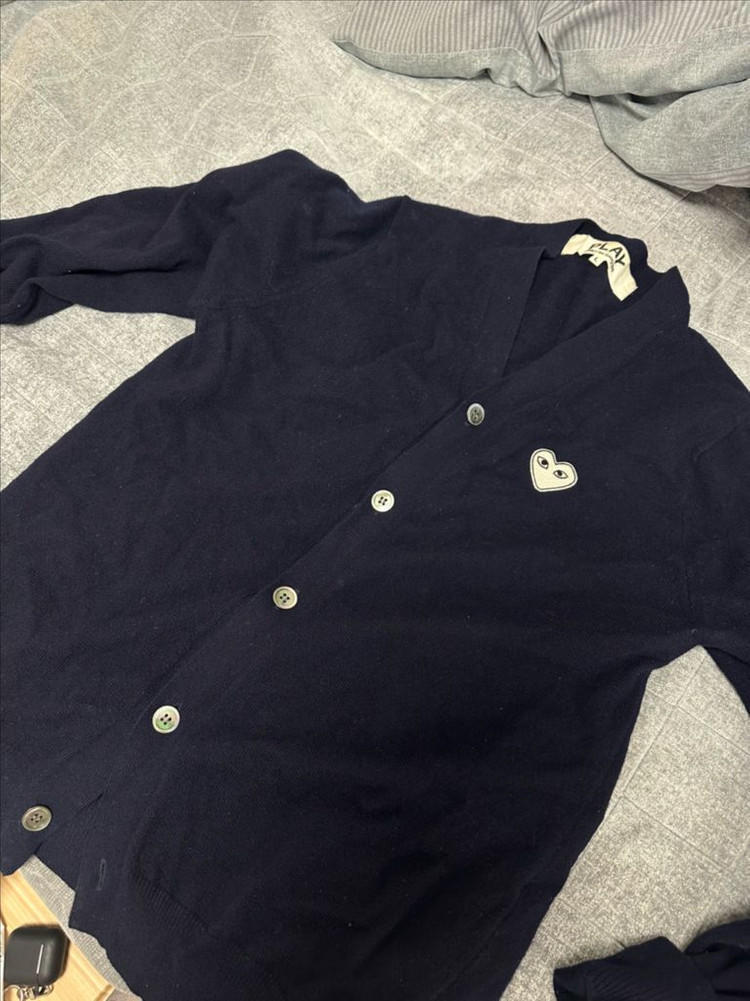 꼼데가르송 가디건 L사이즈고 화이트와펜이라 어렵게구했구요 흔하지않아서 이뻐요 등뒤쪽에 진짜 새끼손톱 반보다도 더작은 구멍있는데 입엇을때 보이거나 더벌어지지않습니다 약간 보풀있고 이쁘게 입으실분 가져가세요