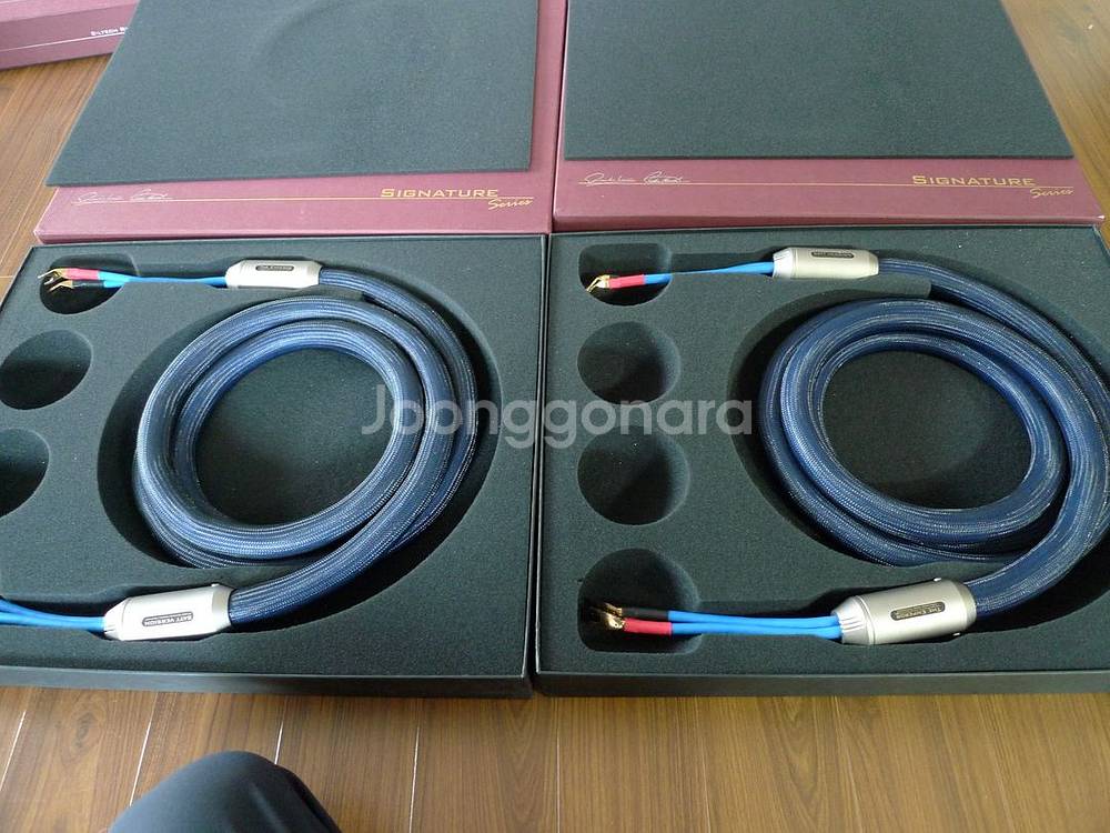 가격 다운 1500->1300. 제가 내놓은 다른 매물 실텍 엠프리스 포노케이블과 같이 구입시 2000만원. 매우 희귀 아이템 실텍 스피커 케이블 엠페러 G6 SATT 3미터/페어. 현재는 엠페러 크라운 모델로 발매중입니다(2.5M/페어 5600만원대 국내 쇼핑몰 가격) 컨디션 완벽하며 양쪽 스페이드 골드 단자, 오리지널 박스, 제품 보증서 있음 (받침대겸 댐퍼는 없습니다) 고가품이라 직거래만 가능. 국내 거래 자료가 없어 국제(eBay) 시세보다 많이 낮췄습니다. 참고로 실텍 케이블 가격은 길이와 가격이 거의 정비례 합니다. (3M는 1.5M 가격의 2배 근접) 서울 용산구 직거래.