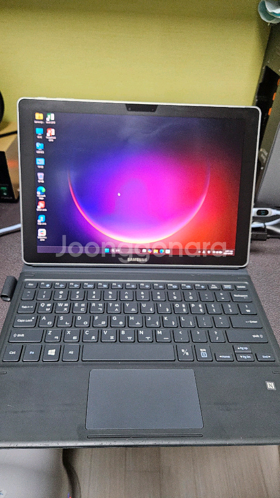 갤럭시북12.0 모델입니다. 전체적으로 정말깨끗하고 상태좋습니다. s펜 포함이며 해상도가 높은모델이라 화질 굉장히 좋습니다.액정보호필름 붙어있고 기기에 기스같은건 찾기힘듭니다.pd충전 지원되며 led키보드 터치패드 이상없습니다. 키스킨 드리고 박스구성품 모두 드립니다. 배터리80프로정도 효율 나옵니다. i5 7200u 8기가램 256기가ssd 발광키보드 pd충전지원 윈도우11 한글 오피스 풀세팅 바로사용하시면됩니다.