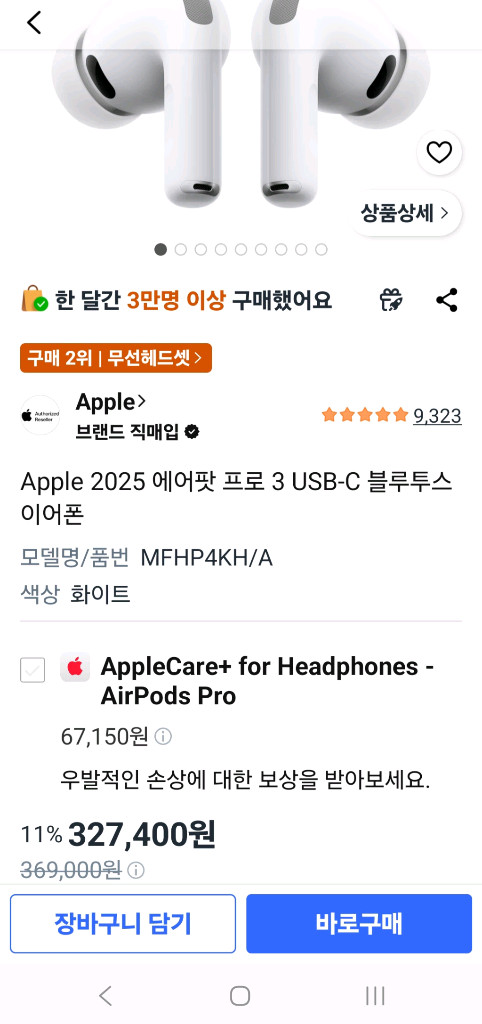 애플에어팟프로3 입니다 제가직접 쿠팡에서 구매한거고1.29에 구매해서 받아 쓴지 두달정도 됐네요 구매내역있고 정품보증 다 됩니다~ 제조년월 2026-Jan 집에서만 사용해서 케이스끼고 깨끗하게 썼습니다 케이스꼈으나 미세한 생활기스정도는 있을 수 있어 사진참고 부탁드려요 모든기능 다 정상작동하고 너무 잘쓴 제품입니다 이어캡들어있는 해당 제품박스도 같이 드립니다 구매시 뾱뾱이에담아 편의점택배 보내드려요! 채팅주세요~