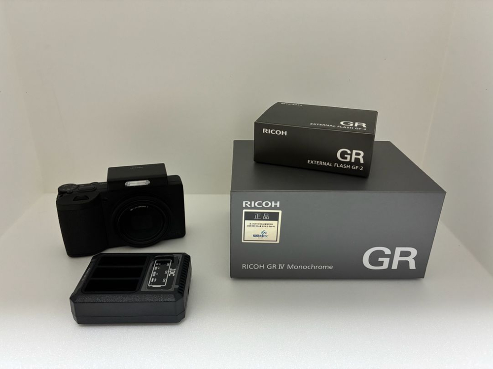 리코 GR IV Monochrome 카메라 판매해요 풀박스 구성에 외장 플래시 GF-2까지 포함되어 있어요 사진에서 보시는 것처럼 구성품 모두 깨끗하게 보관되어 있답니다 호환 베터리 충전기 도 드립니다 감성적인 흑백 사진을 좋아하시는 분들께 추천드려요 컷수는 55컷이고 현재 정품 등록 되어있는 상태입니다 각개판매 안합니다