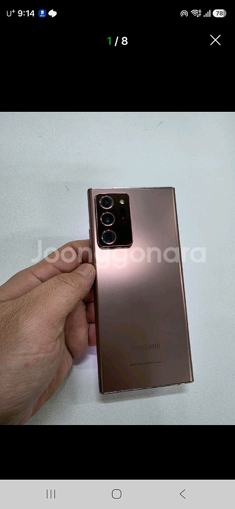 노트20울트라 브론즈 256기가입니다 제품설명 잔상붉게있고 액정깨끗합니다 외관 사진그대로 미세사용감 정도입니다 기능정상이고 다른하자없어요 구매하시면 케이스드립니다 오후4시이전 결제시 우체국택배 당일발송 됩니다 제품이상시 2주이내 반품 됩니다 010 4566 8555 문의주세요 수원시 장안구 송죽동398-32 입니다 퀵배송도 됩니다