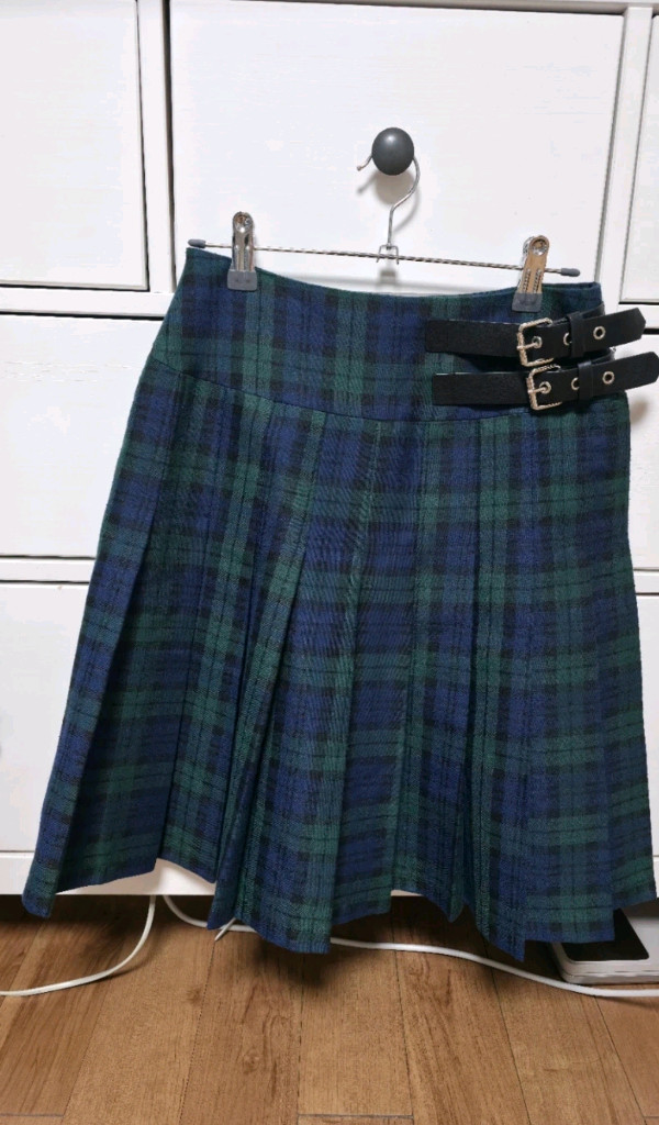 개인정보(거래정보)를 주고받는 행위는 사기에 노출될 수 있으므로 즉시 중고나라로 신고해 주세요네이비와 그린 색상이 조화로운 체크 패턴의 플리츠 스커트입니다. 벨트 디테일이 포인트로, 캐주얼하게 연출하기 좋습니다. 허리둘레: 34cm, 총장: 56cm 🖤 GS 반값택배비 포함 가격 🖤 계좌이체만 받아요 🖤 교환 환불 불가 🖤 예민하신 분은 패스