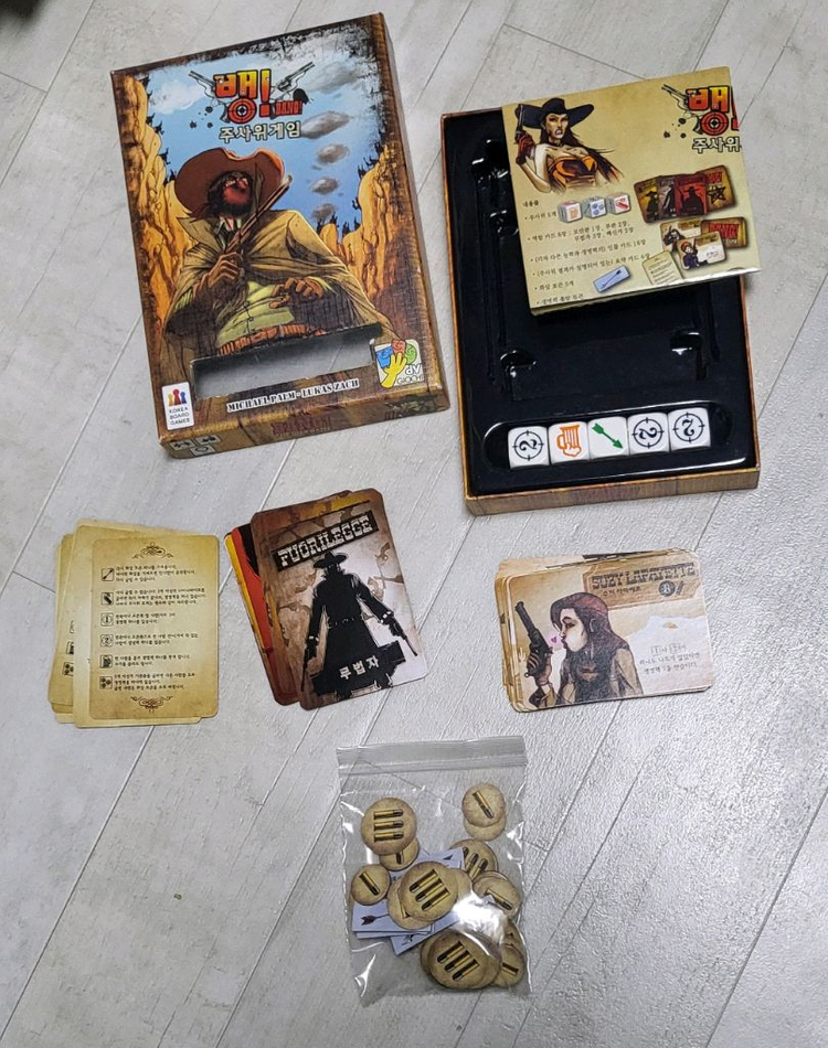 개인정보(거래정보)를 주고받는 행위는 사기에 노출될 수 있으므로 즉시 중고나라로 신고해 주세요뱅주사위 보드게임 1. 상태 좋음. 12000원 구성품 모두 있습니다. 2. 사용감 있음. 5000원 설명서, 토큰(1개그림 1개, 3개그림 2개)없음.