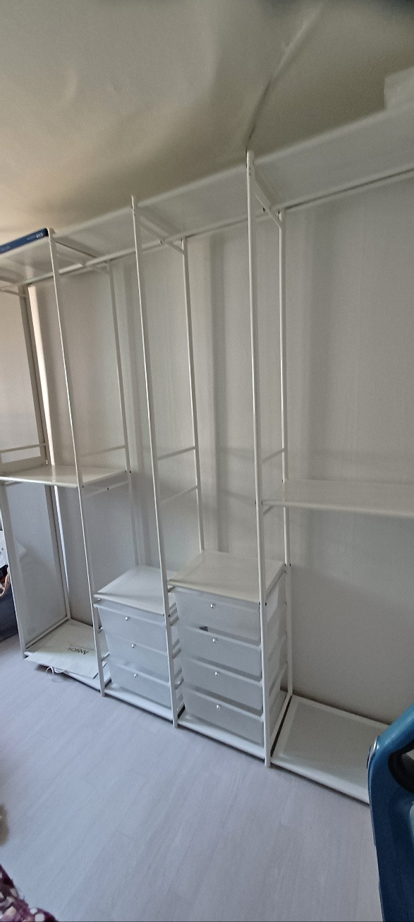 개인정보(거래정보)를 주고받는 행위는 사기에 노출될 수 있으므로 즉시 중고나라로 신고해 주세요시스템 행거로 옷걸이와 서랍이 포함된 드레스룸 시스템이에요. 깔끔한 화이트 컬러로 어떤 인테리어에도 잘 어울리고, 상태도 양호합니다. 이번주 금요일 이사인데 이삿날 오시면 분해하여 드립니다. 춘천 후평 주공 5단지에서 이사 나가서 의왕시 의와스마트시티퀸덤으로 이사 갑니다. 두 곳 다에서 판매 가능합니다.