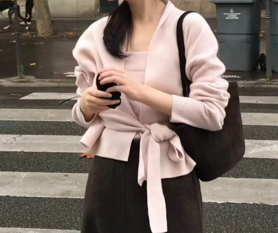 시에 샬롯 울가디건 슬리브리스 세트 페일핑크