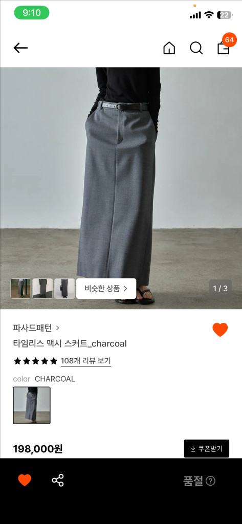 파사드패턴의 타임리스 맥시 스커트 차콜 색상 S 사이즈예요 - 29센치 작년 구매 - 사이즈: S - 총길이: 86cm - 착용횟수 2회 컨디션 최상 - 판매가: 19만8천원 * 지금은 품절된 파사드패턴 맥시 울스커트 입니다 소재와 박음질 등 만듬새가 고급스러워요 제 스펙 160cm/49 일때 발목 끝에 맞춰 밑단 수선 5cm정도 했습니다 제 스펙과 비슷하신 분 수선없이 바로 착용 가능하시구요, 봄,가을,겨울까지 간절기 시즌 입기 좋은 두께감에 깔끔하고 세련된 디자인이라 데일리룩 활용에 좋으실거에요 *반택: +2200 *일반: +3600