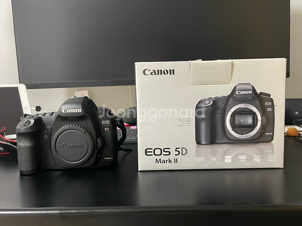 캐논 EOS 5D mark2 바디 중고 구매 후 제습함에만 보관하다가 판매합니다. 촬영 컷수는 5만 컷 입니다. 카메라, 배터리, 충전기, 메모리, 스트랩, 설명서, 케이블, CD, 보증서, 박스 등 구매시 모든 용품 구성 입니다. 추가로 구매한 호루스벤누 파우치도 같이 드리겠습니다. 택배로만 판매합니다. 같이 판매하고 있는 캐논 제품 2개 이상 구매하시면 택배비 무료로 배송해 드리겠습니다. 검색 바랍니다.