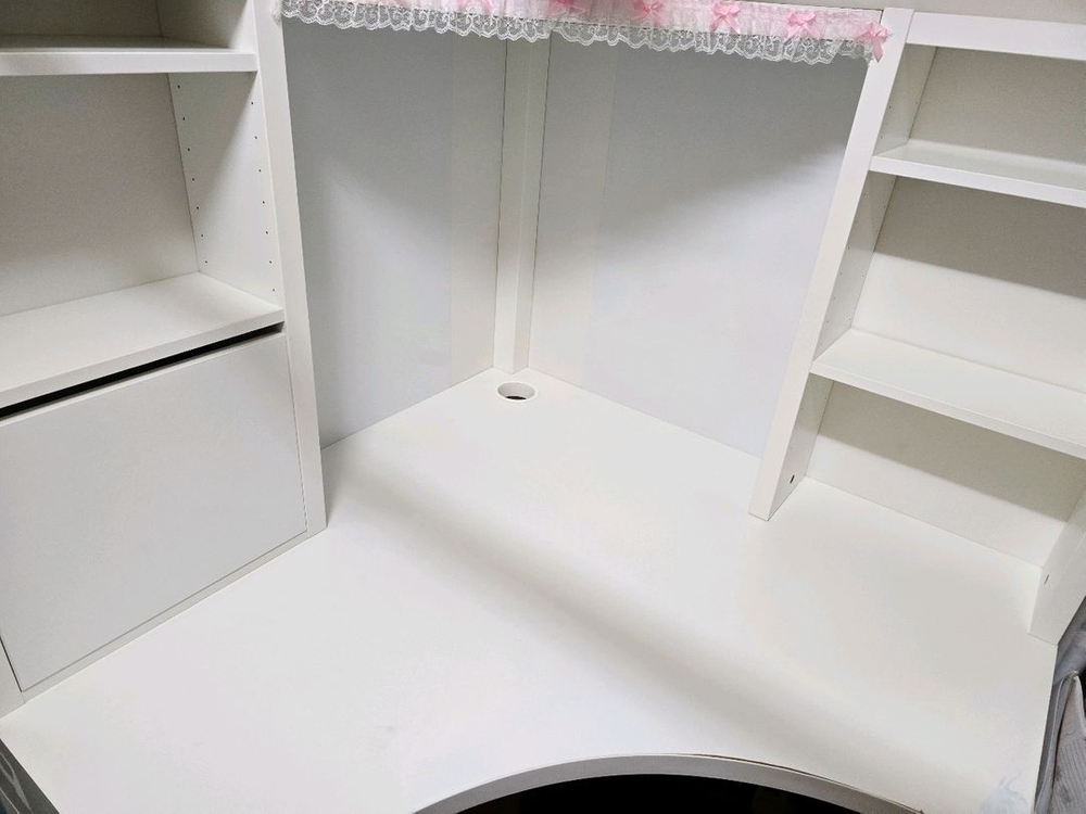 이케아 MICKE 미케 코너워크스테이션 책상 판매합니다. 이케아의 유명한 코너 책상 제품이에요~ 일반 컴퓨터 책상으로 사용하셔도 좋고, 자녀분들 책상이나 굿즈 장식존으로 사용하셔도 이쁩니다. 안성재 셰프님 자녀분들도 사용하시더라구요~👍 화이트 색상으로 깔끔하고, 100cm x 100cm x 142cm 크기로 공간 활용에 좋아요. 구매 후 5년 정도 되었고 사용감 (흠집이나 까짐 얼룩 등등) 있는 중고 제품으므로 싸게 내놓습니다. 사진으로 보이는 레이스 장식은 원래 달려있던 게 아니고 제가 달아두고 사용한 거라 지금은 깨끗하게 떼어 낸 상태입니다. 원하시면 같이 드려요~ 상세 사이즈 등 공식 홈 링크도 첨부합니다. https://www.ikea.com/kr/ko/p/micke-corner-workstation-black-brown-30354274/ ✨️ 책상은 가져가시기 편하도록 일부 분리 해두었습니다~ 사이즈 체크 해주시고, 장소는 면목 오성마트 옆 쪽에서 거래 가능합니다!! ✨️ 택배 거래는 어렵습니다 ㅠ.ㅠ 거래 원하시는 분은 톡으로 연락주세요~