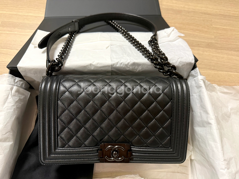 샤넬 보이백 미듐사이즈 캐비어가죽 올블랙 판매합니다. 시즌으로 체인이 블랙으로 나온 상품입니다~! 요 올블랙 흔하지 않고 무난하면서 시크한 매력이 있어서 너무 예쁜 가방입니당^^* 23번대이고 인보이스,영수증,개런티카드,(홀로그램 딱 잘부착되어있음) 리본,상자 풀셋으로 가지고 있고 정말 잘 보관했습니다. 연식은 오래 되었는데 1년에1~2번? 정도만 잠깐씩 들어서 실 사용횟수는 많지않아요~! 결혼할때 받은거라 의미 있어서 소장용으로 가지고 있었는데 실사용 가방만 남기고 정리중이라 많은 고민끝에 판매합니당 ! 바디부분 로고부분 상태 정말 좋고 모서리부분 사용감 조금 느껴지는정도입니다. 지금 정가1000만원이 넘는걸로 알고있는데 좋은 가격에 편하게 드실분 연락주세요~! 금액이 크기때문에 직거래 원하고 직거래 장소는 서울 서대문구에서 가능합니다. 펑방지금 10만원 받을게요~